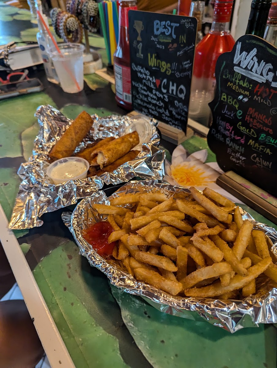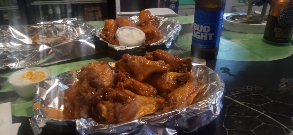 lol definitely one of the most Florida vibes bar I’ve ever found in PA/NY. I’m from Erie and was passing through. Def glad I did. Super vibey lil dive bar. The wings were delicious. I got kickin bourbon. Good mix of sweet heat. Also pickle spears. Nice and chunky. Shawna was cool and down to earth holding it down bartending and making wings. lol unfortunately it was monsoon pouring so the back patio was off limits and pretty swampy. So I couldn’t see it. I think it was pretty pricey at $28 for 10 wings, pickle spears and one beer. But they were def good. I just think they should have prices listed. The menu is a plastic stansion with paint pen lol. But overall it was a great vibe. Cool locals to chat with. Good vibes so can’t complain. Glad I popped through. Just know there’s not a lot of room and I’m sure they get swamped with orders lol. Def enjoyed them having touch tunes and cranking it loud! Played some CCR and Petty. Seemed fitting. Hope to come back through. Also, the wings I got weren’t pan fried. They only deep fried them. Apparently it’s a timely and exhaustive process. So ya gotta request it. Also just as a heads up, it does have a bit of a funky smell. I mean as others mentioned it is a swamp lol so don’t expect the ritz Carlton or your local fancy wing bar.